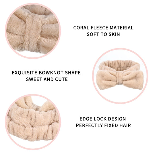 4 Pack Facial Bowknot Makeup Headband, Fleece Skin Care Bow Hair Bands for Women Spa Washing Face (Grey)(Grey)